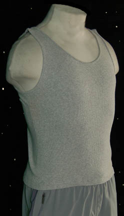 Description: A costume featured in the Star Trek: Enterprise episode “The Forge”, wherein Earth's embassy on Vulcan is bombed, it is traced back to a religious faction known as the “Syrrannites”. This costume is for wear by Dominic Keating in the role of the armory officer of the “Enterprise NX-01”, “Lieutenant Malcolm Reed”, during a basketball betwixt members of the crew, and is a gray tank top, gray Nike exercise pants with a gray stripe down the leg, two functional pockets, zip ankle-cuff adjustment, a tie on the inside, around the waist, and were found separately but all in the “Lt. Reed” collection.