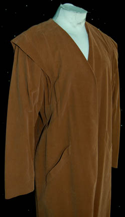 Description: A costume featured in the Star Trek; Voyager episode “Workforce”, wherein most of the crew of “Voyager” are kidnapped, altered, brainwashed and put to work on huge industrial work force. This costume is for wear by veteran actor Don Most in the role of a Quarren doctor who solves his planet's labor problem by kidnapping alien species and putting them to work, “Kadan”, and is a long-sleeved, full-length brown leather, lab coat with a textured, wrinkled exterior, functional pockets and a soft, lighter-brown lining. Don Most, previously Donnie Most, is best known as the character “Ralph Malph” on the classic television series “Happy Days”. A sewn in tag reads ‘Voyager, Don Most’ and the costumer’s tag reads ‘Voyager #262-3 Workforce, Kadan, Don Most’.