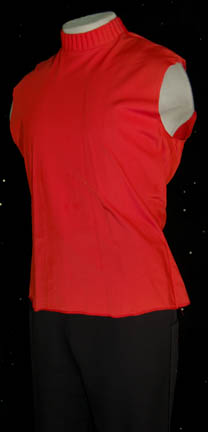 Description: A set of Starfleet officer's Class-A uniform items featured in various Star Trek feature films from Star Trek II: The Wrath of Khan through Star Trek VII: Generations selected to begin a uniform collection, or add to an existing one for completion. The costume is a set of black officer’s trousers with two lengths of unattached yellow division stripes indicating the wearer to be a member of the engineering division, and a red sleeveless undershirt with a ribbed collar indicating the wearer to be a trainee.