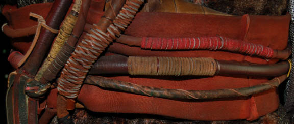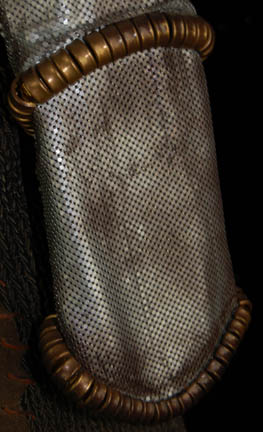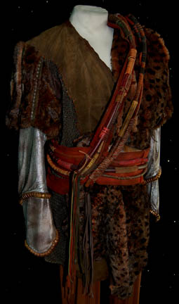 Description: A Klingon uniform costume featured in the Star Trek: Enterprise episodes “Bounty”, “The Expanse”, and “Borderland”. The costume is form fitting brown spandex trousers with a multi-fabric top including faux fur, leather, and fabric elements. The sleeves are silver colored metal ‘chain mail' with gold colored metal ringlets distressed to appear ‘rusty’. The fur is spotted and bunched for accent, and the costume comes with a belt harness made from wound and wrapped pieces of leather with grommets and Velcro placements. The sewn in Enterprise tag lists multiple actors use, the costumer’s tag matches those actors names reading ‘Enterprise, Klingon, Ben Scott #051, Dan Desmond #052, David LaBell #080’.