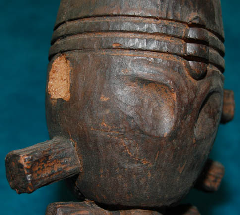 Description: A “Horga'hn” is a statuette that symbolizes fertility on the pleasure planet Risa and indicates that a person carrying it is looking for “Jamahoron”, a pleasurable sexual practice native to the planet. Featured in the Star Trek: Deep Space Nine episode “Let He Who is Without Sin…”, this Horga’hn is made of Styrofoam (Polystyrene) painted brown to resemble wood. Due to time, use and storage one of the pegs is missing off of the top right side of the head. Measures approx. 11 ½ x 5 ½ x 4 inches.