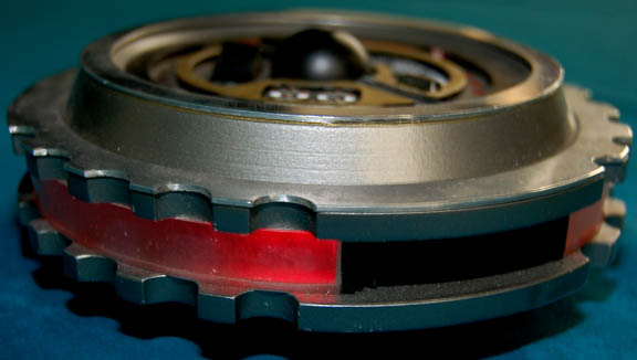 Description: A prop explosive device credited as being a plasma charge in the Star Trek: Voyager episode "Collective" and used in the episodes "Dark Frontier: Part I and II" as well. The item is molded resin painted metallic silver with shiny metal accents and multiple, metallic-gold, black, and bronze painted details. The item features a switch on the front which activates a three banks of red colored lights and a flashing light on the front powered by a pair of AA sized 1.5volt batteries (removed for shipping) which retain power from on screen use. The item also features a Star Trek: Enterprise inventory application on the reverse indicative of use in various episode of that series. The item measures approx. 1.75 X 6 inches diameter.