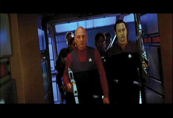 Description: (Paramount, 1996) Constructed of black and grey-painted resin with retractable strap and working sight that is wired for illumination. Used on-screen by Patrick Stewart in his role as "Captain Jean-Luc Picard" in <i>Star Trek: First Contact</i>. Measures 33 in. long and comes with a Letter of Authenticity by Set Decorator John Dwyer.