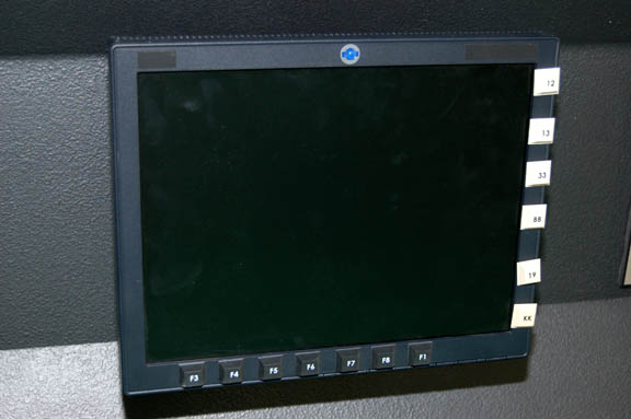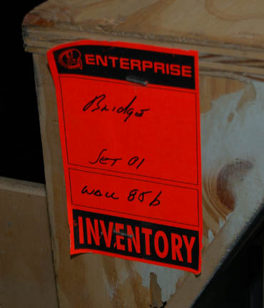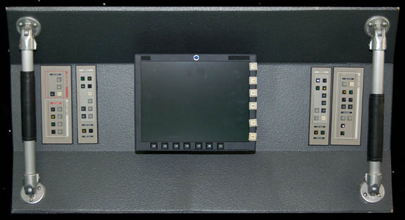 Description: A fashioned bridge console component featured in various episodes of Star Trek: Enterprise on the bridge set of the famed “Enterprise NX-01”. The item is wood painted gray built as the middle section of starboard side, bay number two. The item features affixed acrylic panels with graphical applications adhered to the surface and multiple untested lights which should function on power provided by simple American telephone line. The item features a fortified opening for monitor cables to be run through the mid-section next to an affixed ball mount for an accompanying computer monitor with a mounted ball and twist joint. The monitor is black and features Enterprise-style faux rubber buttons with numeric values and has been tested to work on standard American power using an un-provided cable (easily acquired at electronics stores). The monitor was not tested for data signals, but power only and is believed to be in working condition as per careful storage. The item features two faux leather grips positioned on two metal rails book ending the console and a pair of wooden handles affixed to the reverse. The item is inscribed ‘Star 2 MID' on the reverse and was located with a bright orange inventory tag staled to the side reading ‘Bridge Set 001, wall 85b’ with an ‘Enterprise’ graphic and title. The item measures approx. 46 X 9.25 X 24 inches.