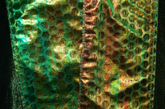 Description: A lot of items featured in the Star Trek: The Next Generation episode “Menage a Troi”; wherein a Ferengi Daimon is enraptured by “Lwaxana Troi” (Majel Barrett) and decides to kidnap her, “Deanna Troi” (Marina Sirtis) and “Commander Riker” (Jonathan Frakes). These items are a long-sleeved, full-length lab coat in a reflective green shade featuring a hexagonal, iridescent, design along the cuffs, down the front and the back, two blankets of the same green material as the coat and with light green hems.