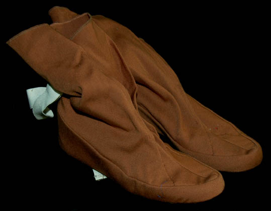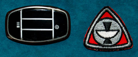 Description: A brown 2-piece Class-A Starfleet uniform featured in Star Trek I: The Motion Picture. The lot comes with an unattached plastic bio-monitor, unattached matching cloth covered shoes, and an engineering red backed Epsilon IX station assignment patch for the left breast. The item is intended for female wearers.