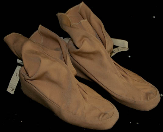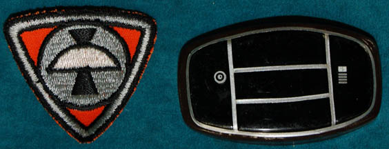 Description: A tan 2-piece Class-A Starfleet uniform featured in Star Trek I: The Motion Picture. The lot comes with an unattached plastic bio-monitor, unattached matching cloth covered shoes, and a sciences orange backed Epsilon IX station assignment patch for the left breast. The item is intended for female wearers. The trousers are overalls style and the metal zipper is broken but a clasp at the top provides closure.