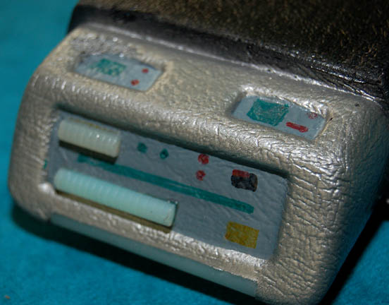 Description: A prop tricorder molded into its holster for background use in Star Trek episodic television. The item is made from molded foam rubber and is very soft with two strips of Velcro for use around ‘away team' loops on uniforms (sold separately). The item is painted black and metallic silver with acrylic accents embedded into the ‘tricorder’. The item measures approx. 1.5 X 3.5 X 4.25 inches.