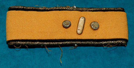 Description: A Starfleet uniform jumpsuit of the style appearing first in Star Trek II: The Wrath of Khan and continuing service through at least Star Trek VII: Generations after which they appeared variously in episodes of Star Trek: The Next Generation and “Flashback” of Voyager. The costume consists of black officer's trousers with an operations yellow division stripe down the outside seams of both legs, a red officer’s uniform with a double breasted front. The jacket features a sewn on yellow division shoulder strip and a tan chest interior. The uniform comes with a yellow long sleeved undershirts with a ribbed collar and cuffs, and a division strip for the sleeve with a gold colored metal commendation bar and a pair of ‘five year service’ pins. The uniform is intended for female wearers.