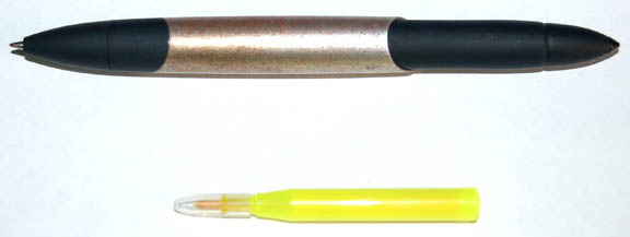 Description: A prop item featured in the Star Trek: Enterprise episode “Detained”; wherein "Captain Archer" (Scott Bakula) and "Ensign Mayweather" (Anthony Montgomery) stray into a demilitarized zone and are put into a detention facility where all of the inmates are Suliban, by a race called the Tandarans who are at war with them. This item comes in its original case with a replacement cartridge, is black rubber on either tip, and writes in either blue or red depending on which direction you turn it. The item in the case measures approx. 9 X 6 X 2 inches.