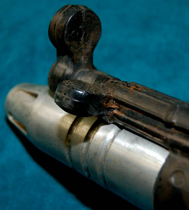 Description: A prop weapon featured in the Star Trek: Enterprise episode “Shadows of P'jem”; wherein “Captain Archer” (Scott Bakula) and “T’Pol” (Jolene Blalock) get captured by insurgent rebels on a war torn planet in the Coridan system, “Shran” (Jeffrey Combs) shows up to assist in their rescue but the Vulcans ruin the plan with one of their own. The item is a prop pistol, resin cast in brown featuring metal barrel, and textured accents in the fashion of a real pistol sub-machine gun; oversized sight, cocking mechanism, and safety catch. The item measures approx. 13 X 8.5 X 1.5 inches.