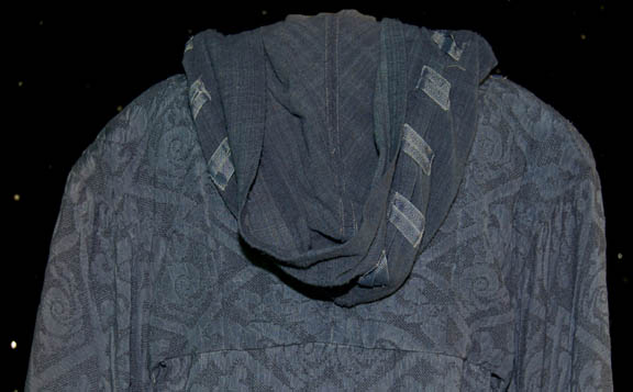 Description: A Vulcan monk costume featured in the Star Trek: Enterprise episode “Kir'Shara’ for wear by Star Trek: The Original Series veteran actor Jack Donner in his portrayal of the “Vulcan Priest” who removed the Katra of “Surak” from the mentality of “Captain Archer” (Scott Bakula). The costume is a full length blue colored robe with pleated legs and an outer robe with an attached hood and a dragon patterned. The costume also comes with a pair of blue colored leather shoes with affixed sandals. The sewn in Enterprise tags read ‘Jack Donner show 79’. Donner portrayed “Subcommander Tal” in “The Enterprise Incident” of Star Trek: The Original Series.