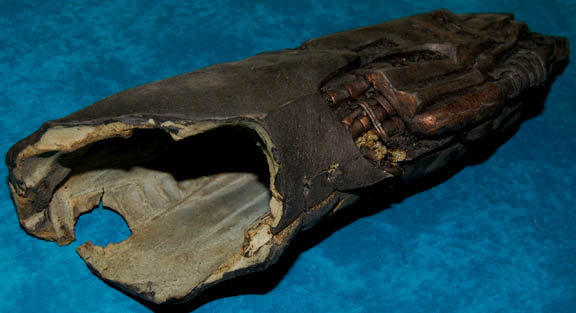 Description: A prop item similar to those featured variously throughout all modern Star Trek episodic television. This item is a black, foam rubber cast arm from a Borg drone, the cybernetically enhanced quasi-race from the Delta quadrant who are linked into one hive mind and whose only goal is perfection, it is molded to appear as if there is circuitry and wiring exposed, has various copper-colored accents and has sustained minor damage due to time and storage. The item measures approx. 21 X 8 circular inches.