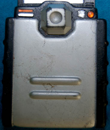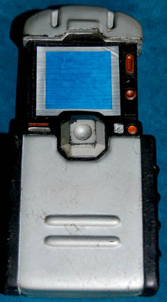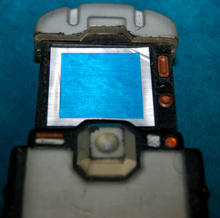 Description: A prop item similar to those featured throughout Star Trek: Enterprise. This item is a static, prop hand scanner, rubber-cast in black featuring silver and copper-colored accents, molded into the extended position with an appliqué of a blue screen, and various “buttons” and “lights” on the front. The item measures approx. 6 X 3 X 1 inches.