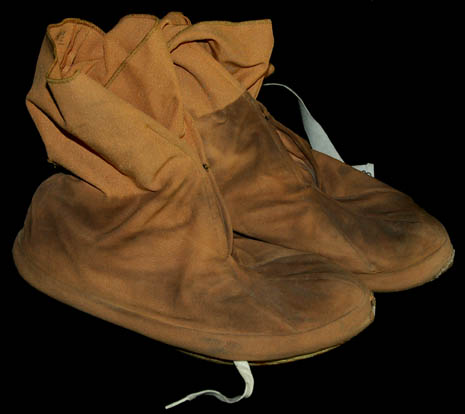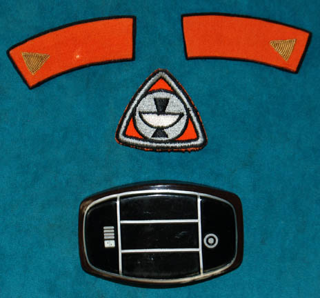 Description: A tan colored Starfleet Class-D uniform jumpsuit featured in Star Trek I: The Motion Picture. The costume comes with unattached shoes, and unattached plastic bio-monitor, an unattached pair of orange sciences division-rank strips for the shoulders with inverted triangle accents indicating the wearer to be a ‘chief petty officer', and an orange backed Epsilon IX assignment patch for the left breast. The costume is intended to be worn by male actors. The shoes are rather dirty due to time or storage conditions.