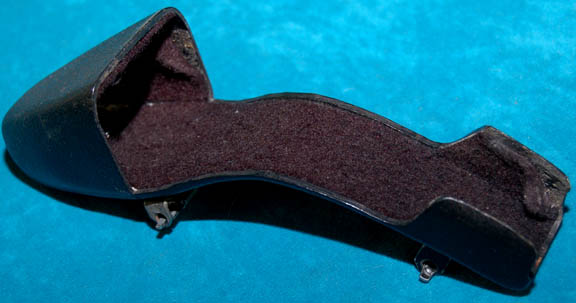 Description: A prop item similar to those featured throughout Star Trek: The Next Generation. It is a black, molded plastic holster for the type-2 Federation hand phaser with faux velvet on inside and sliding clips for the belt. This item measures approx. 8 X 2 X 2.5 inches.