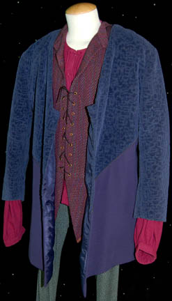 Description: A lot of costumes featured in the Star Trek: The Next Generation episode “Homeward” for wear by Paul Sorvino as “Nikolai Rozhenko” and Penny Johnson as “Dobara”. The lot is trousers and a purple shirt from the end of the episode with a multi-colored vest as well as a blue coat for wear by Paul Sorvino. Also, Penny Johnson's costume is a green dress with an affixed orange undergarment and laces up the sides. Sewn in tags indicate use by Penny Johnson and Paul Sorvino, as well as other actors. The costumer’s tags indicate use in episode ‘# 265 Homeward’ and list the credited actor’s names and the components. Penny Johnson would go on to play “Kasidy Yates” in Deep Space Nine.