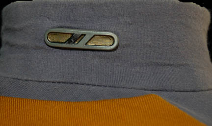 Description: A lot of costumes featured in various Star Trek: Voyager episodes for wear by Roxann Dawson in her portrayal of “B'Elanna Torres”. Contained in this lot is a Starfleet uniform jumpsuit, black with operations gold shoulders with a gray undershirt with sewn in voyager tags reading ‘Roxann Dawson’, a set of patterned olive colored trousers with a matching distressed long sleeved top with a ‘burn mark’ and hole in the center chest featured in the episode “Faces” with sewn in Voyager tags reading ‘Roxann Biggs’, and a set of maroon trousers and a brown robe. Costumer’s tags are present. A small holster made from brown leather with Velcro placements was located with the costumes.