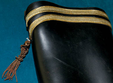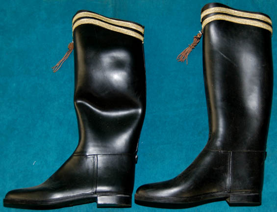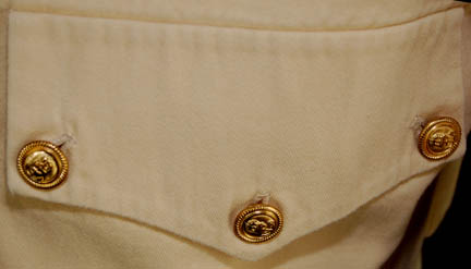 Description: An 18th century British officer's sailing uniform sans jacket and hat featured in Star Trek VII: Generations for wear by Michael Dorn in his portrayal of “Lieutenant Commander Worf” at his holodeck promotion ceremony. The costume is white breeches a white button front shirt and a white vest, the garments feature gold colored buttons. A pair of black leather boots with gold trim are present with interior labels reading ‘Dorn #3’. Sewn in Star Trek VII tags read ‘M.D.’ on the shirt and breeches, and a tag reading ‘Michel Dorn’ is present in the vest.