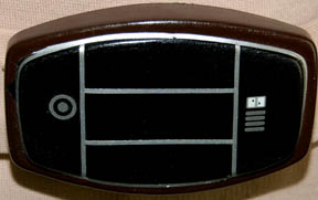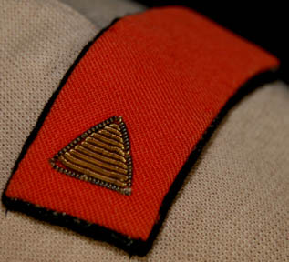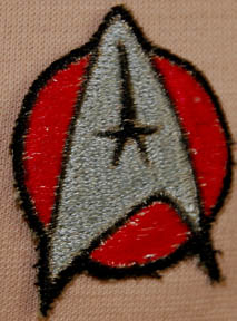 Description: A beige colored Starfleet Class-B uniform featured in Star Trek I: The Motion Picture. The costume is brown trousers with a beige colored long sleeve uniform top, with an attached plastic bio-monitor and an affixed engineering red backed Starfleet emblem patch. The costume also features a pair of red division-rank strips affixed to the shoulders with triangular shaped gold thread embellishments indicating the wearer to be the rank of ‘chief petty officer'. The costume is intended for male wearers.