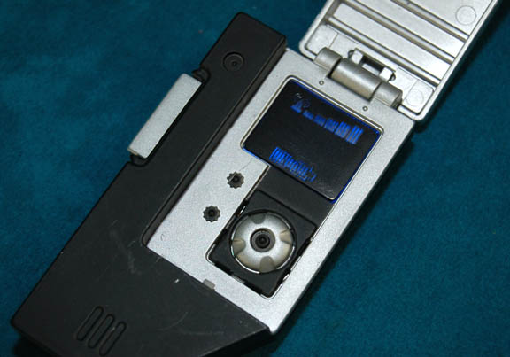 Description: A prop item featured in various episodes of Star Trek: Enterprise for use by members of the Earth Starfleet. This item is plastic cast in black with a gray button on the side that opens a gray, textured flap, and reveals gray and black plastic accents, an illuminated screen with power left from production, screws on the battery compartment on the back; a black, leather holster featuring a Velcro closure on the top, heavy duty metal clip on the back, and is the last one yet located. The item measures approx. 4 X 2.5 X 1.5 inches.