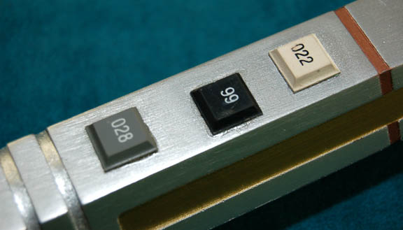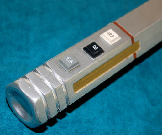 Description: A prop spanner made for use in the Star Trek: Enterprise episode, “In a Mirror Darkly, Part II” in which the evil “Trip Tucker” (Connor Trinneer) hit “Dr. Phlox” (John Billingsley) with it. Made of foam rubber the spanner is painted silver with gold and copper paint accents. Three rubber faux buttons are also attached. Measures approx. 12 x 1 ½ inches diameter.