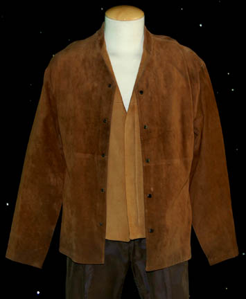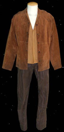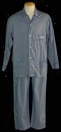 Description: “Captain Archer” (Scott Bakula) huge civilian costume lot made for wear on the Star Trek: Enterprise series. The lot includes gray “Adidas” trousers, a long sleeved gray top and a short sleeved gray “Calvin Klein” V-neck t-shirt. The trousers and long sleeved top have sewn in tags that read “Enterprise, Scott Bakula”. A brown V-neck t-shirt with a sewn in costume tag that reads, “Enterprise, Scott Bakula” and a green ribbed “Kenneth Cole” t-shirt with a sewn in tag that reads, “Scott Bakula”. Blue small checkered pajamas with buttons up the front and an embroidered pocket with the initials “HFH” sewn onto it. The sewn in tag in the pajama trousers reads, “Enterprise, Scott Bakula”. Gray shorts with a sewn in tag that reads, “Enterprise, Scott Bakula” and a navy blue sleeveless “French Connection” t-shirt with a sewn in tag that reads, “Scott Bakula”. A costume from the Star Trek: Enterprise episode, “The Communicator” that includes a brown leather jacket with snaps up the front, a brown waistcoat with a zip up the front and brown trousers. The trousers have circular stitching across the seat, some of which is loose. The sewn in tags in the jacket and waistcoat both read, “Enterprise, Scott Bakula, #34”. “The Communicator” costume comes complete with costume tag that reads, “ENT, The Communicator, #34, Archer”.