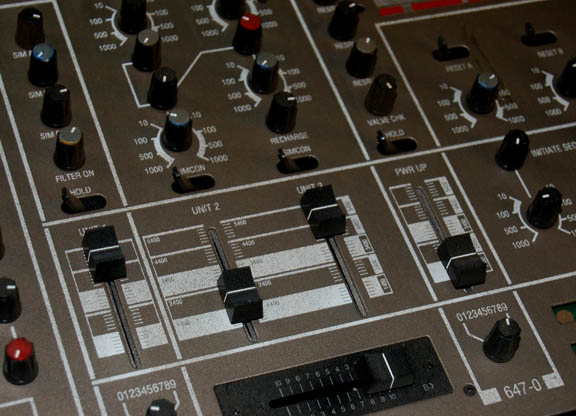 Description: A piece of set dressing featured in various episodes of Star Trek: Enterprise in the engineering department. This item was inset into any one of a large series of like control junctions that made up parts of the walls of engineering. Carefully removed from sets, this item is in reality a ‘Radio Shack Sound Mixer/Sound Effect/ Echo' board with a serial number of ‘007664 10A00’. The item is powered by a two prong standard 120volt 60Hz 20W power supply that when plugged in lights the VU dials, but has not been tested on actual sound equipment. With a variety of dials, slides, and switches, this already handsome item was altered in appearance, painted in the color scheme of the “Enterprise NX-01” engineering bay, and covered in silk screened lettering in the Starfleet fonts. Additional faux buttons have been applied as have several numeric inventory applications. The RCA-style audio plug ins on the back are a series of four stereo channels, an effect and output jacks, and a monopole microphone jack with auxiliary line in. With handles on either side, screw holes for wall or rack mounting, and rubber feet on the bottom for table top use, this item is completely versatile and a definite rarity. The item measures approx. 19 X 11 X 3.5 inches.
