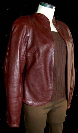 Description: A costume featured in the ninth Star Trek feature film “Insurrection”; wherein “Captain Picard” and the crew of the “Enterprise-E” rebel against Starfleet and the Federation to prevent the exploitation of a defenseless race called the Ba'ku. This costume is for wear by Marina Sirtis in the role of the half-Betazoid/ half-human Counselor of the “Enterprise-E”, “Deanna Troi”; it consists of two matching, long-sleeved, brown shirts in a stretchy, lycra-like fabric, a pattern of darker-colored, thin, vertical stripes, olive-green trousers with loops for a phaser or tricorder. A long-sleeved, brown, leather jacket and high-heeled, olive-green, leather boots with scuff marks and dust left over from production. This costume was located in the Marina Sirtis collection and is the best representative of a “Deanna Troi”, “Insurrection” costume remaining and features a costumer’s tag that reads ‘Troi, Change #4, Scene 135-End, Civilian Clothes, Star Trek: IX’.