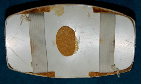Description: A plastic bio-monitor featured in Star Trek I: The Motion Picture for wear on Starfleet uniforms. The item is brown colored plastic with a black adhered label and metallic silver colored details to suggest technology. The interior is filled with foam and a back panel holds into place a pair of elastic strips with dried glue residue. The item measures approx. 4.25 X 2.5 X 0.75 inches and is intended for male wearers.