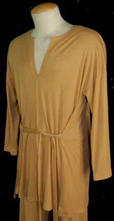 Description: A set of men's Starfleet casual wear featured in Star Trek I: The Motion Picture. The costume is light trousers and a matching long sleeved shirt with a waist tie and a crimped neckline. The costume is intended for male wearers.