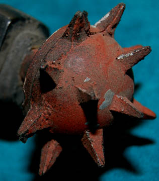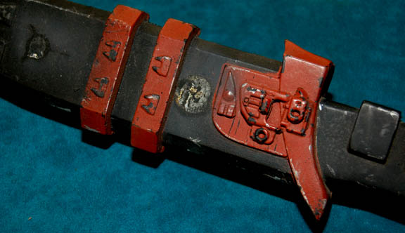 Description: A Klingon knife made for use in Star Trek episodic television. Made of foam rubber the knife is painted black and brown and has faux spikes at the top of the hilt. On the reverse side are metal clips for attaching the knife to a costume. Measures approx. 14 x 3 x 1 ½ inches.