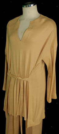 Description: A set of men's Starfleet casual wear featured in Star Trek I: The Motion Picture. The costume is light trousers and a matching long sleeved shirt with a waist tie and a crimped neckline. The costume is intended for male wearers.