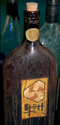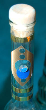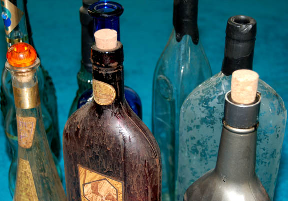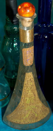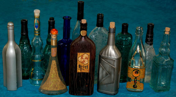 Description: A lot of bottles featured variously in Star Trek episodic television. The bottles range in size and volume, are all made from glass of varying opacities and some include labels and/or cork stoppers. One bottle is adorned with metallic gold and blue colored adhesive details made to appear as the emblem of the Andorians, believed to be a bottle featured in the Star Trek: Enterprise episode “Proving Ground” with the dried remnants of blue died fluid visible on the inside glass and on the cork. Another bottle is smoked brown glass with a cork and two labels, one featuring the logo of Triskelion believed to have been used in Star Trek: Deep Space Nine. Another item of note is a metallic silver painted bottle with similarly colored rubber applications adhered externally in a geometric pattern, an empty bottle for Klingon blood wine like those appearing in the Star Trek: Deep Space Nine episode “Way of the Warrior, Part I”. The tallest bottle measures approx. 15.25 inches, the shortest 11.5 inches and the less notable bottles may vary slightly from photograph. There are 14 bottles in the lot.