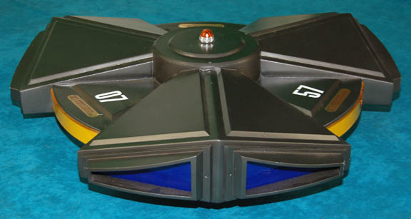 Description: A transporter inhibitor featured in Star Trek IX: Insurrection used to keep Son'a forces from forcibly evacuating the Ba’ku from their village. The item is a sizeable disk shaped prop with triangular fittings molded into the plastic shell. The item features colored acrylic elements and electrical light components which are connected to an untested wire and plug extending from the bottom. The item is adorned with multiple numeric value applications and Starfleet inventory applications. The item measures approx. 30 X 9.5 inches.