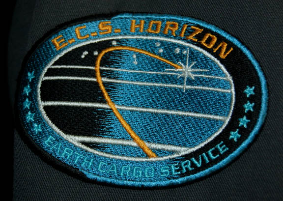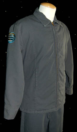 Description: A costume featured in the Star Trek: Enterprise episode “Horizon”. The costume is a set of gray Dickies brand trousers and a matching jacket with a zippered front and a sewn on “E.C.S. Horizon” assignment patch on the right shoulder. The costume features sewn in Enterprise tags.