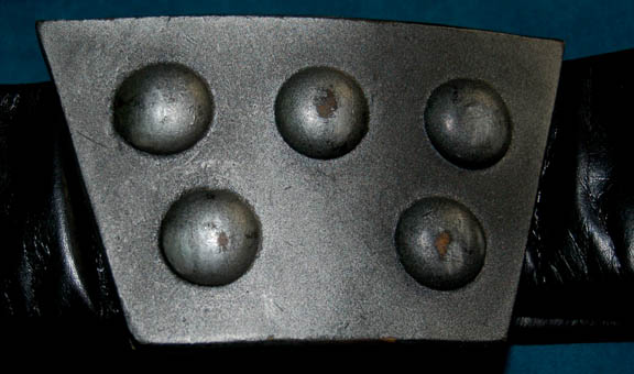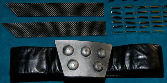 Description: The Klingons are a humanoid warrior civilization originally from the planet Qo'noS but now a strong and revered interstellar military power seen throughout the Star Trek anthology. This Klingon accessories lot includes elements used to create the Klingon costumes. It includes a metal “House of Martok” emblem that has Velcro backing, a Klingon black leather belt that has a resin buckle, eight extra-large metal tacks that have a gold colored finish, six metal pyramid studs, three black tube accents with gold colored metal fixtures, thirty metal rectangular accents, a leather shoulder strap, a metal aglet chain, three strips of gray textured fabric and two metal collar accents.