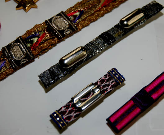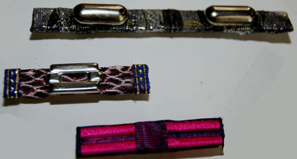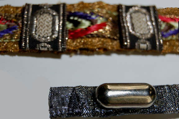 Description: A set of rank badges and campaign ribbons featured in Star Trek VI: The Undiscovered Country for wear by flag ranked characters in the opening scenes of the film. The items are a pair of gold and silver colored metal badges indicating the wearer to be a ‘vice admiral', a strip of gold trim with multi-colored antique fringe attached and a pair of affixed wrapped lozenges also indicating rank, and a set of multi-colored campaign ribbons of varying length, some with metal embellishments. The lot also includes a length of gold colored trim appearing on screen as added fringe under the black border on the front of an officer’s uniform. One of the rank badges is affixed to a red placement for the left sleeve of a uniform.