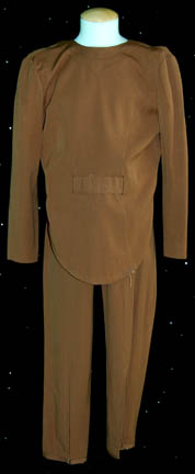 Description: A brown colored Class-A Starfleet uniform featured in Star Trek I: The Motion Picture. The costume is brown trousers with a brown uniform top. The lot comes with these unattached items, a bio-monitor and a white backed Epsilon IX assignment patch indicating the wearer to be a member of the command division. The costume is intended for male wearers.
