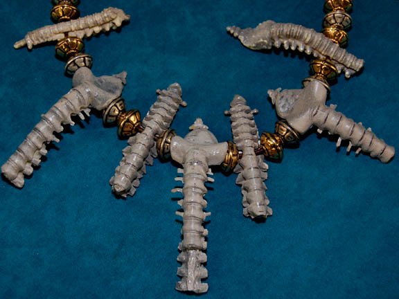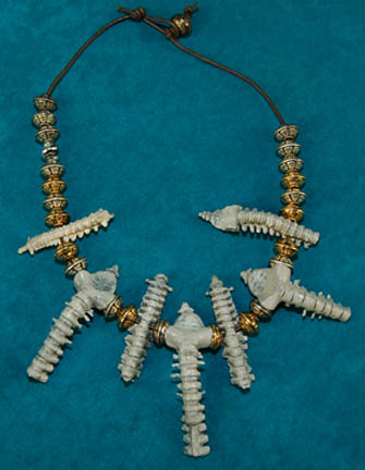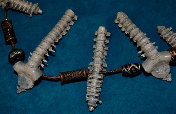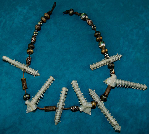 Description: “Leskit” (David Graf) was a Klingon officer onboard the I.K.S. Rotarran who served as the helmsman during “General Martok's” (J.G. Hertzler) first command in the Star Trek: Deep Space Nine episode, “Soldiers of the Empire”. This lot includes Leskit’s Klingon necklace and the stunt necklace. The necklace is made of painted plastic bones with metal and plastic detailed beads on brown leather string. Measures approx 27 inches. The stunt necklace is similar to Leskit’s necklace with the faux bones however the beads are different and it is shorter. Stunt necklace measures approx. 23 inches.