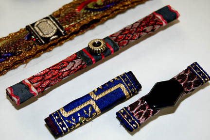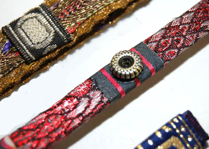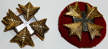 Description: A set of rank badges and campaign ribbons featured in Star Trek VI: The Undiscovered Country for wear by flag ranked characters in the opening scenes of the film. The items are a pair of gold and silver colored metal badges indicating the wearer to be a ‘rear admiral', a strip of gold trim with multi-colored antique fringe attached and a single affixed wrapped lozenge also indicating rank, and a set of multi-colored campaign ribbons of varying length, some with metal embellishments. The lot also includes a length of gold colored trim appearing on screen as added fringe under the black border on the front of an officer’s uniform. One of the rank badges is affixed to a red placement for the left sleeve of a uniform.
