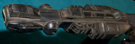 Description: A prop phaser rifle similar to those featured throughout Star Trek episodic television. This item is rubber cast in dark gray featuring textured accents all along the barrel to denote detail and circuitry, an attached stock, and an adjustable, black nylon, strap. The item measures approx. 18 X 7 X 1 inches.