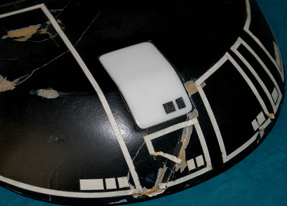 Description: A prop item similar to those featured throughout Star Trek, 24th century episodic television. This item is similar to what Captains “Picard” (Patrick Stewart) or “Janeway” (Kate Mulgrew) might receive a personal communiqué or review analyses on; it is foam cast, black with white graphical application detail, features a rounded front portion, a white faux button on the front, a rear-mounted “screen” of smoked acrylic and has moderate wear due to time and storage. The item measures approx. 9 X 10 X 9.5 inches.