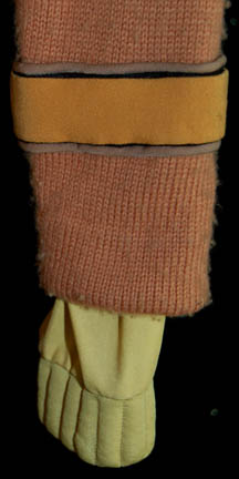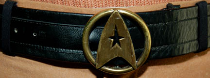 Description: A caramel colored field duty uniform featured in Star Trek V: The Final Frontier for wear by George Takei in his portrayal of “Sulu”. The costume is caramel colored wool trousers with yellow operations division stripes down the outside seams and a matching wool sweater with a yellow division strip on the left sleeve, with a yellow long sleeved uniform undershirt that features a ribbed collar and cuffs. The costume also comes with a black leather belt with a gold colored metal Starfleet emblem buckle for an officer measuring 32-34 inch size and a gold and silver colored metal rank badge with one wire back indicating the wearer to be a ‘commander'. The sweater features a sewn in Paramount tag reading ‘Takei’, the shirt was located separately from the rest of the costume as was the belt. The costume comes with uniform specific Reebok brand name boots colored tan and black with multiple black plastic zip tightenings, size 11, with visible wear due to age. This lot represents the last remaining costume of this style for this character, “Sulu”.