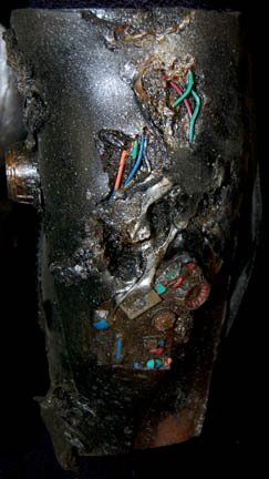 Description: The Borg are an eclectic race of cyborgs with a single goal – perfection. There are no individuals, only members comprised of many species that were assimilated into the collective. They are considered to be the most threatening force in the galaxy. They were featured throughout the Star Trek anthology however this style of Borg was featured in the Star Trek: The Next Generation series in episodes such as “I, Borg” and “Descent, Parts I & II”. The costume includes a black waffle knit jumpsuit with built in feet and a zip up the back and between the thighs. Worn over the jumpsuit are distressed latex rubber, resin and tube attachments that fasten onto the body with Velcro. There is a lower abdominal section, a breast and back plate that is designed to be one piece however due to time and use it is broken into two pieces that need to be reattached to each other for it to stay on the body. Separate biceps and forearm attachments that all fasten with Velcro. The thigh and calve pieces fasten with Velcro in the back. All of the attachments are incredibly detailed with wires, paint, textured surfaces etc… Due to time the glue holding the Velcro strips in place on the limb components has, in some cases, lost its adhesiveness and needs to be re-glued. The actual rubber elements however maintain their integrity.