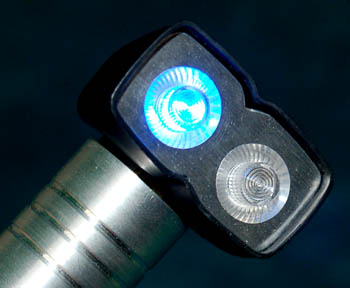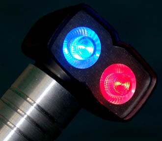 Description: A Starfleet medical scanner featured in the Star Trek: Enterprise episode, “Rajiin” where it was used by “Dr. Phlox” (John Billingsley) on “Rajiin” (Nikita Ager). It has a metal handle with a black plastic tip which houses one red and one blue light. Two buttons on the handle independently activate each light. Measures approx. 5 ½ x 1 ½ x 1 ¾ inches.