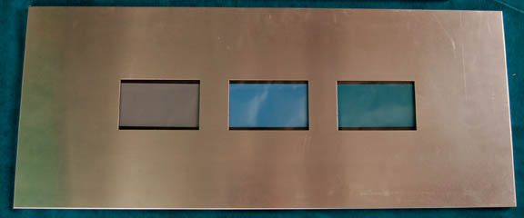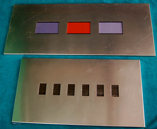 Description: Three pictures made for use as set dressing during the Star Trek: Enterprise series and in the style featured above “Captain Archer’s” (Scott Bakula) desk in the episode, “Broken Bow”. Two of the metal frames have three rectangular spaces with colored paper inserted for decoration and the other frame is smaller with six spaces. Largest frame measures approx. 34 x 14 inches.