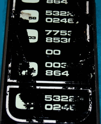Description: A button panel believed to have been featured on the “U.S.S. Enterprise-B” sets in Star Trek VII: Generations. The item is a rectangular piece of black acrylic with rounded corners and beveled sizes, silk-screened to represent buttons with numeric values. Items like this appeared next to doors on the set of the bridge. The item measures approx. 7.5 X 3 inches and shows evidence of damage due to time and storage conditions.