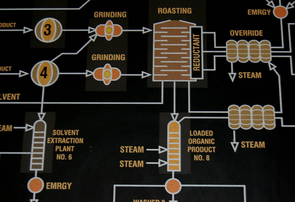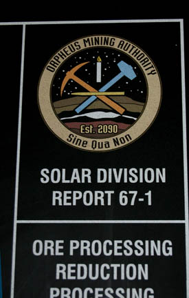 Description: The Orpheus Mining Colony was a mining complex located on Earth’s moon and featured in the Star Trek: Enterprise series. This is a panel from the colony, most likely seen in the episodes “Demons” and / or “Terra Prime”. It’s made of foam core with hardened layers on both sides to reinforce it. The panel shows various mining processes including ‘Ore Processing’ and has the colony’s emblem in the top right corner. Measures approx. 38 x 27 inches. Please note this is currently the LAST Orpheus Mining Authority chart available.