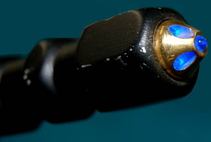 Description: A lot of Star Trek: Enterprise engineering tools. The first metal prop has two black faux buttons, a gold band label and Starfleet label that was featured in an engineering carry case in “The Communicator” episode. The second device is also metal with sections painted black. The gold colored tip has bright blue LED lights that are activated by a switch on the opposite end. Largest item measures approx. 7 ½ x 1 inches diameter.